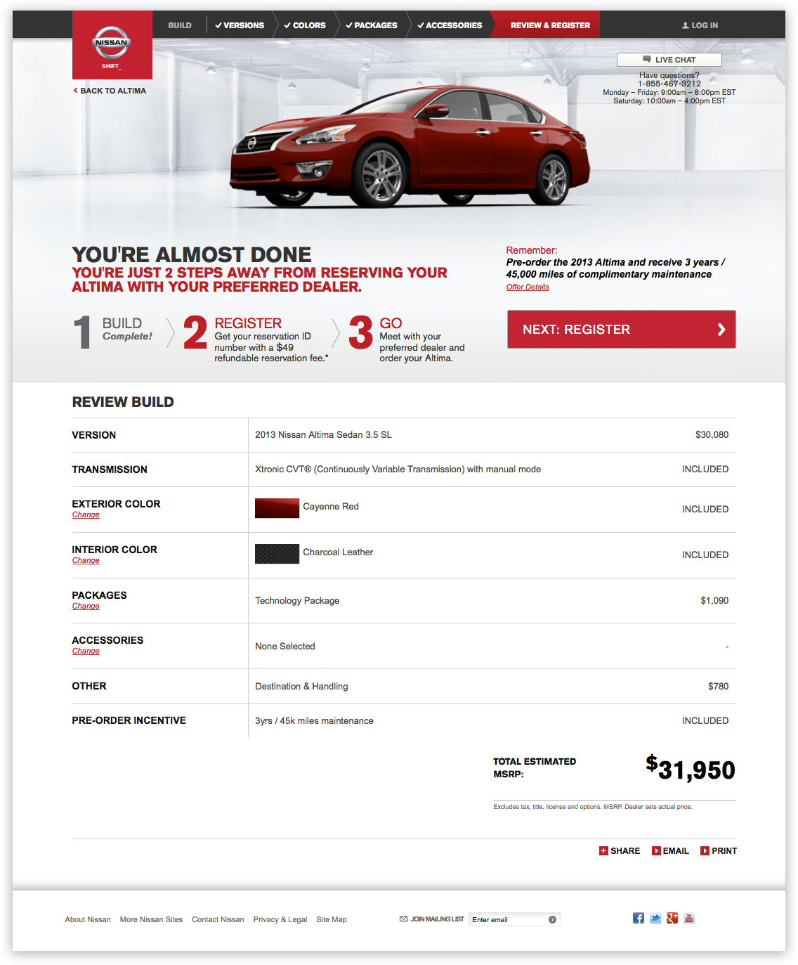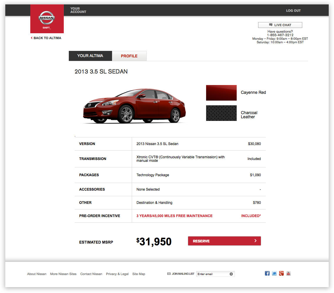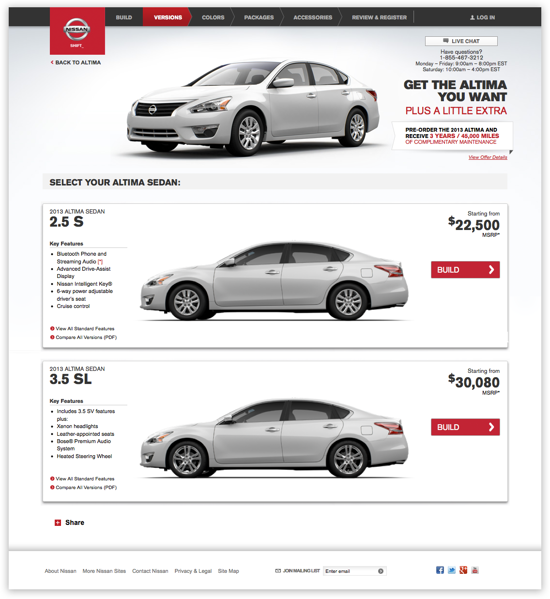 As a designer at Critical Mass, I worked on designing the pre-order build and buy process for the launch of the 2013 Nissan Altima.